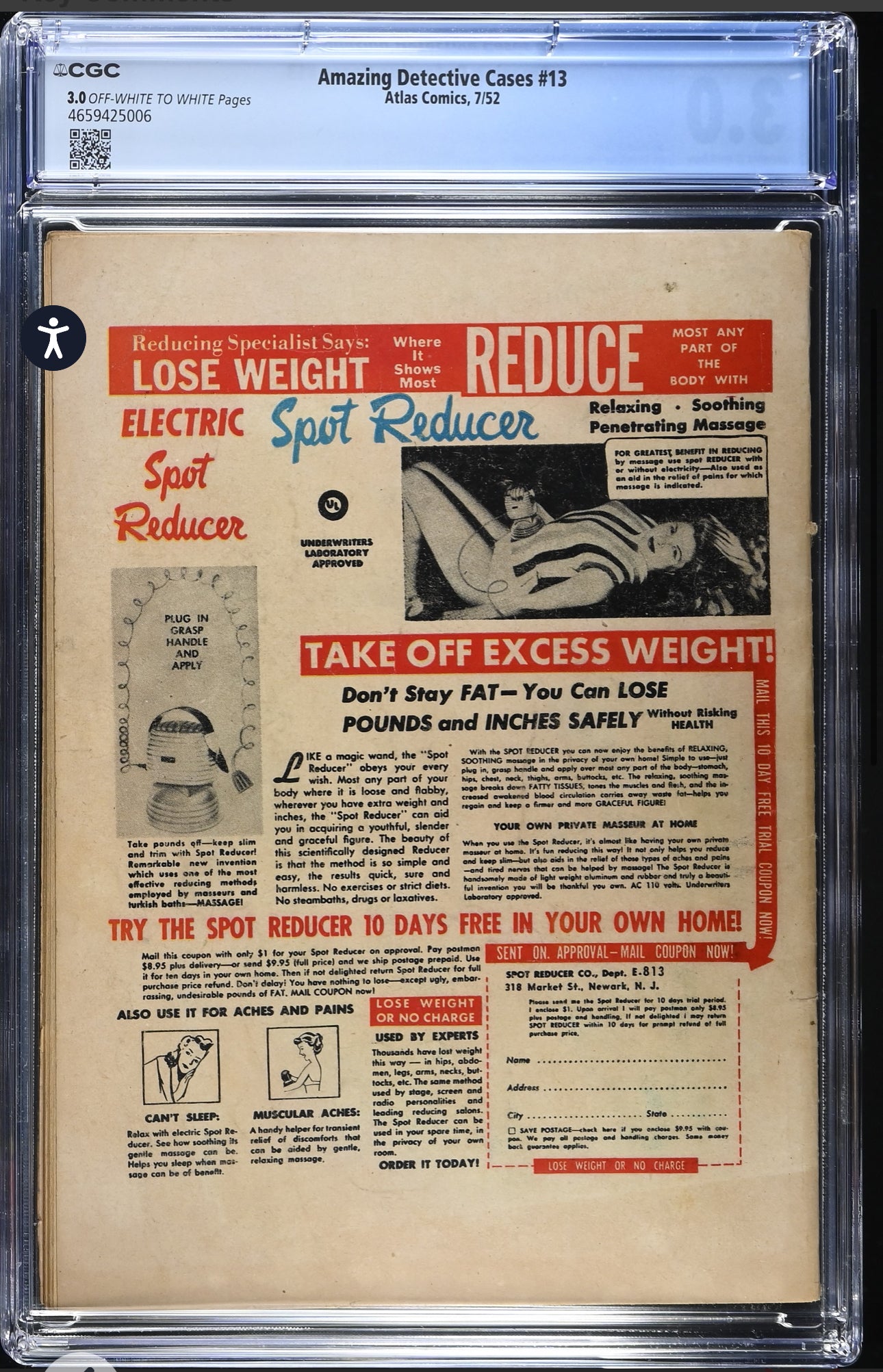 AMAZING DETECTIVE CASES #13 CGC 3.0 (Atlas, 1952) Golden Age Pre Code Horror