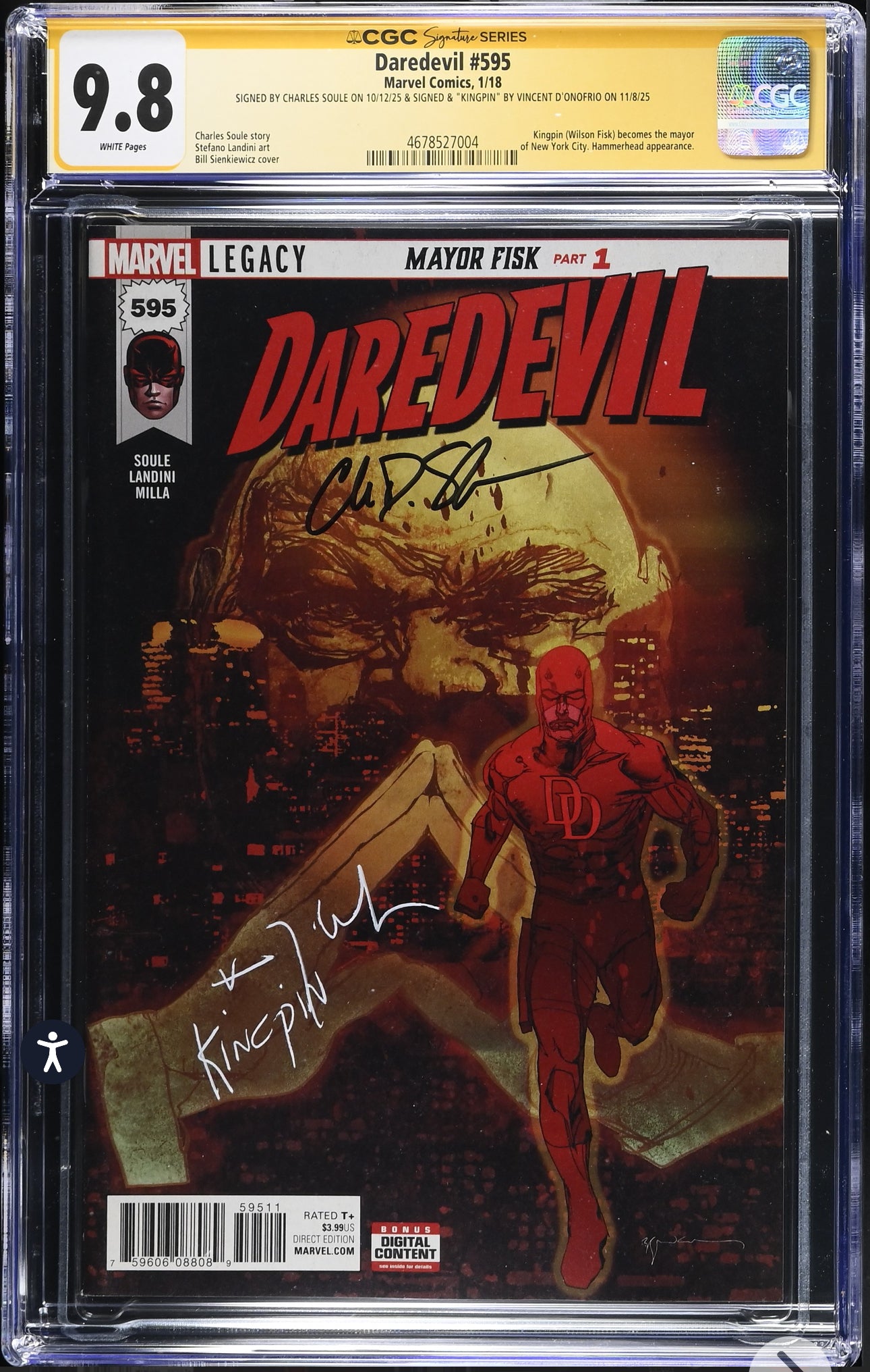 Daredevil #595 CGC SS 9.8 (Marvel, Signed By Vincent D’Onofrio & Charles Soule (Kingpin becomes mayor)